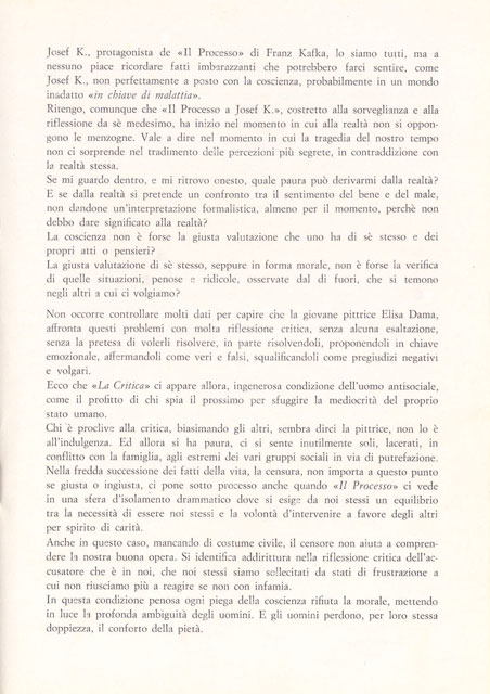 Si tratta del primo profilarsi d'una poetica ancora in gestazione, ma alla giovane Dama s'apre un buon cammino, che qui inizia con evidenti e promettenti propositi di serietà e di equilibrio formale e poetico.